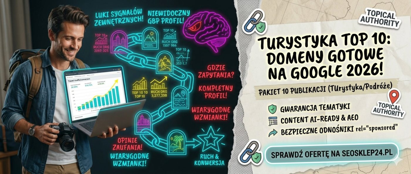 Blogerzy turystyczni, którzy chcą pozyskać backlinki z weryfikowanych portali travel bez konieczności samodzielnego outreachu, mogą skorzystać z pakietów artykułów sponsorowanych na portalach o sprawdzonych metrykach. Gotowy zestaw zweryfikowanych portali turystycznych z TF 46–47 i historią redakcyjną dostępny jest jako artykuły sponsorowane turystyka i podróże — pakiet 10 domen dla blogerów i marek z niszy turystycznej. Wybór spośród zweryfikowanych portali eliminuje ryzyko trafienia na zaplecze PBN i pozwala zaplanować harmonogram publikacji z uwzględnieniem sezonowości branży turystycznej.