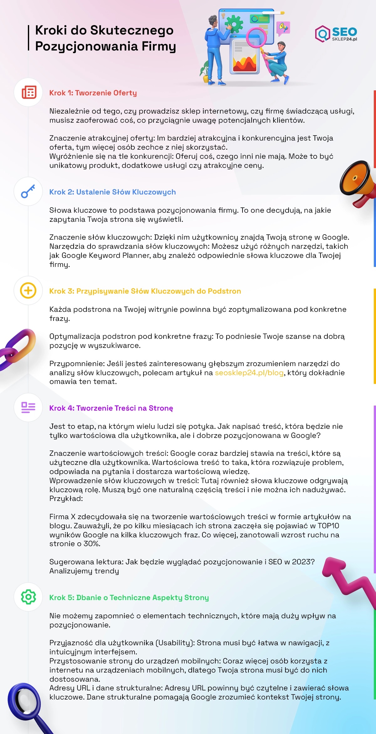 - Optymalizacja podstron pod konkretne frazy: To podniesie Twoje szanse na dobrą pozycję w wyszukiwarce.