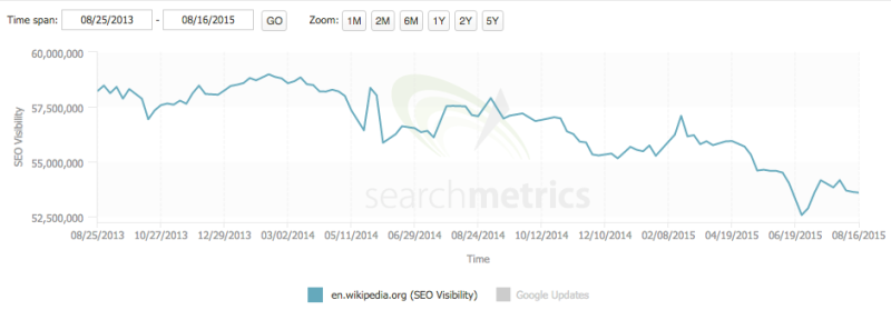 Wcześniej pojawiło się wiele doniesień, jakoby największa encyklopedia online nagle straciła pozycje w organicznych wynikach wyszukiwania, co przełożyło się na drastyczny spadek odwiedzin. Jimmy Wales zaprzeczył tej wersji, jednak potwierdził inne doniesienia, które wskazują, iż Wikipedia systematycznie traci ruch pochodzący z Google.